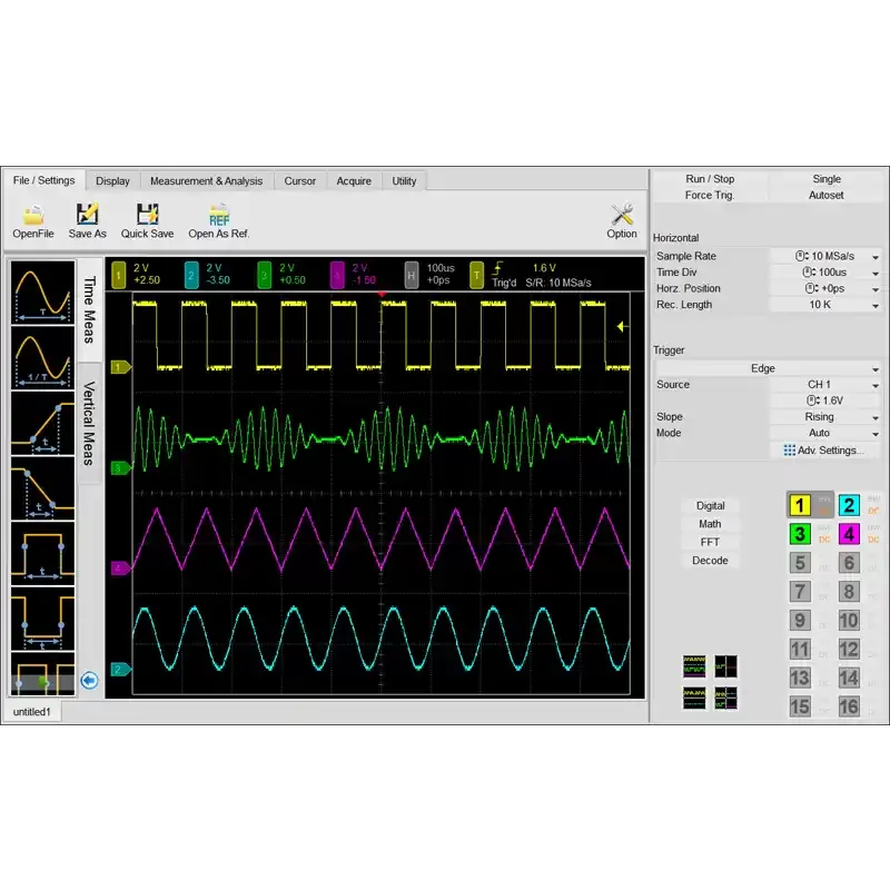1 Ch @ 1 GS/s [512 Mpts];2 Ch @ 500 MS/s [256 Mpts];4 Ch @ 250 MS/s [128 Mpts]