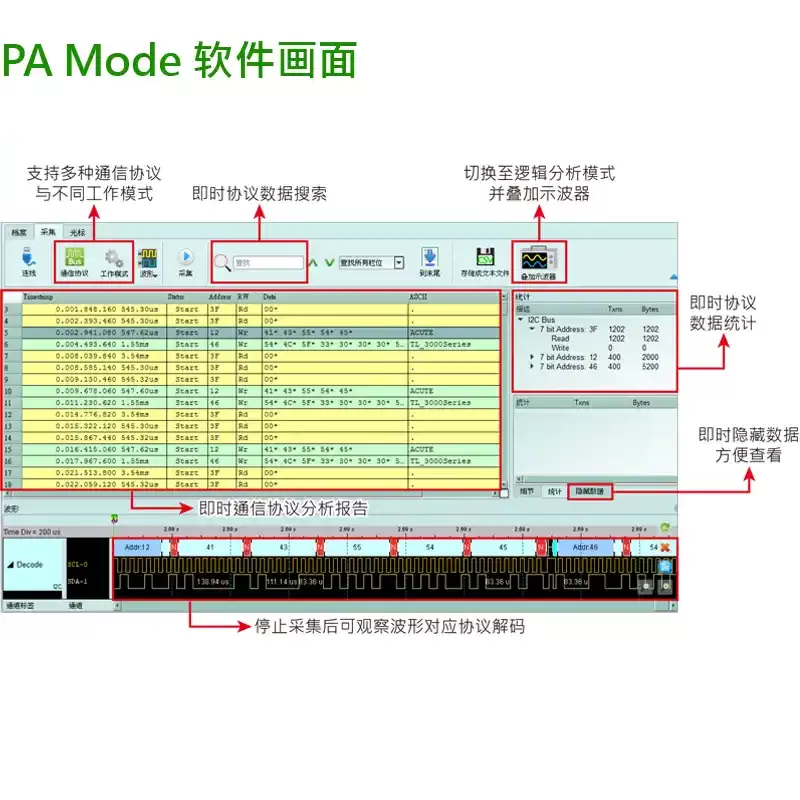 字节, 通道, 宽度, 超时, 单一 / 多条件, 建立 / 保持时间检查, 外部触发, 手动