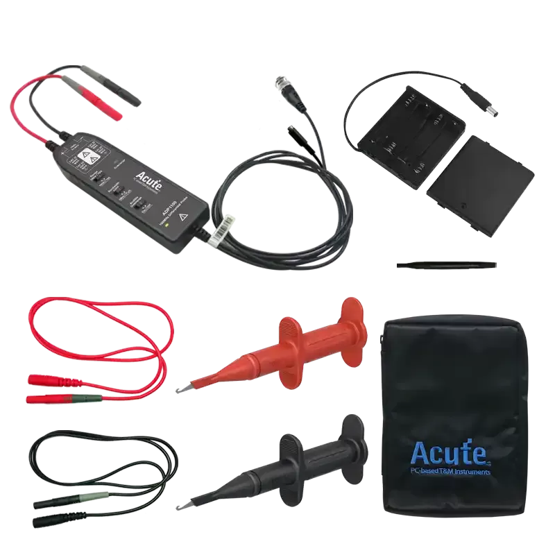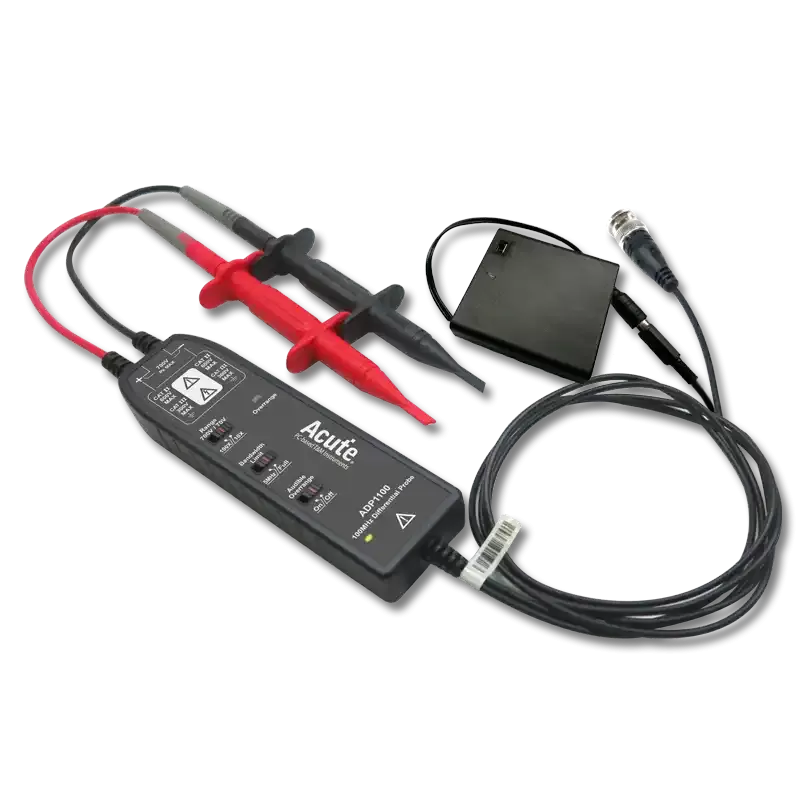 ADP1100-B 是一款高性能的差分电压测量探棒,具有 BNC 接口,可轻松连接到任何具有相应接口的示波器,通过电池供电,无需额外的电源供应,适用于各种电子测试和需要保密性的测量环境,无法使用 USB 接口的情况下。它可让用户安全地测量高达 ±700 V 的差分电压。